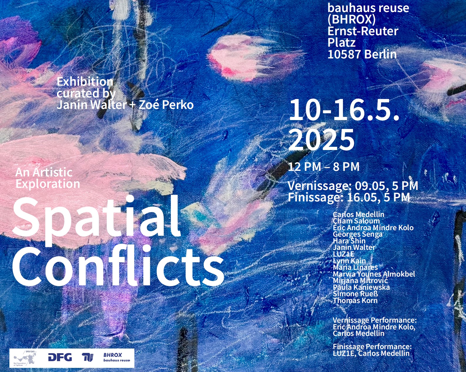 Fast forward one year, and both are welcoming about 150 people to the vernissage of Spatial Conflicts, a multimedia exhibition exploring the tensions that shape space. The exhibition was inspired by the CRC 1265’s concept of Re-Figuration, which challenges the notion of globalization as linear progress. Instead, it highlights the spatial dynamics of overlapping trends—not just of convergence and interconnection, but also of fragmentation and exclusion. In other words: yes, globalization, increasing mobility, digital technology, and urbanization may promise progress—but the flip side often reveals inequality, destruction, and regression.