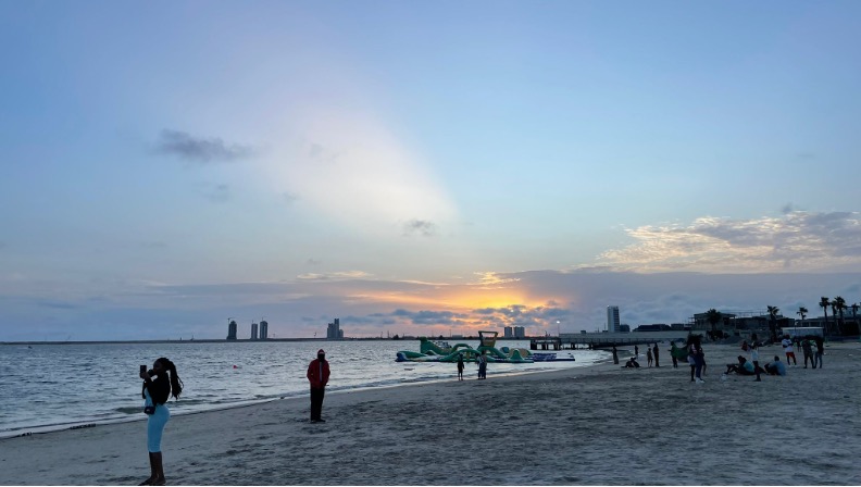 Embracing the vectoral power of the drive, we arrived at the ocean waterfront. Or rather, thanks to the superpowers of our UniLag hosts, who had organized for the Summer School participants to visit the otherwise inaccessible construction site of the Eko Atlantic—the future Nigerian International Commerce City—, we were brought to the interface between ocean and emerging land, where the land is dredged from the same ocean. The whole project is impressive, to use a euphemism: a peninsula of 10 km2 of reclaimed land, expected to house affluent residents, powered by its independently generated energy supply, produced by private capital for the reproduction of private capital, defying the erosive power of the ocean through the power of cement, while simultaneously causing the ocean to rise. The few completed—and inhabited—skyscrapers sit a little awkwardly in the landscape of quite ghostly construction. Only a week later, I also realized that they just as awkwardly demarcate the view from the few accessible (privatized) beaches of the city.