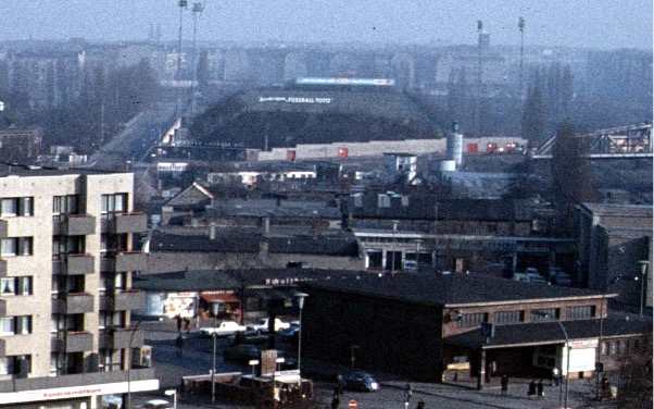 – Die »Plumpe« wurde in einer Zeit nach dem 2. Weltkrieg wiederaufgebaut, in welcher sich in der Bundesrepublik Deutschland eine dramatische Lage zuspitzte. Durch die isolierte Lage Berlins geriet Hertha BSC unter eine enorme Drucksituation, da nicht einmal 200 Meter von der »Plumpe« die Berliner Mauer entstand. Dies war für das Hertha-Kollektiv eine emotionale Zerreißprobe, »denn viele Fans des Vereins stammten aus dem Ostsektor und konnten die Spiele nun vom einen auf den anderen Tag nicht mehr besuchen«[21]. Durch die Trennung der Stadt in zwei Hälften gingen auch Zugehörigkeiten verloren.