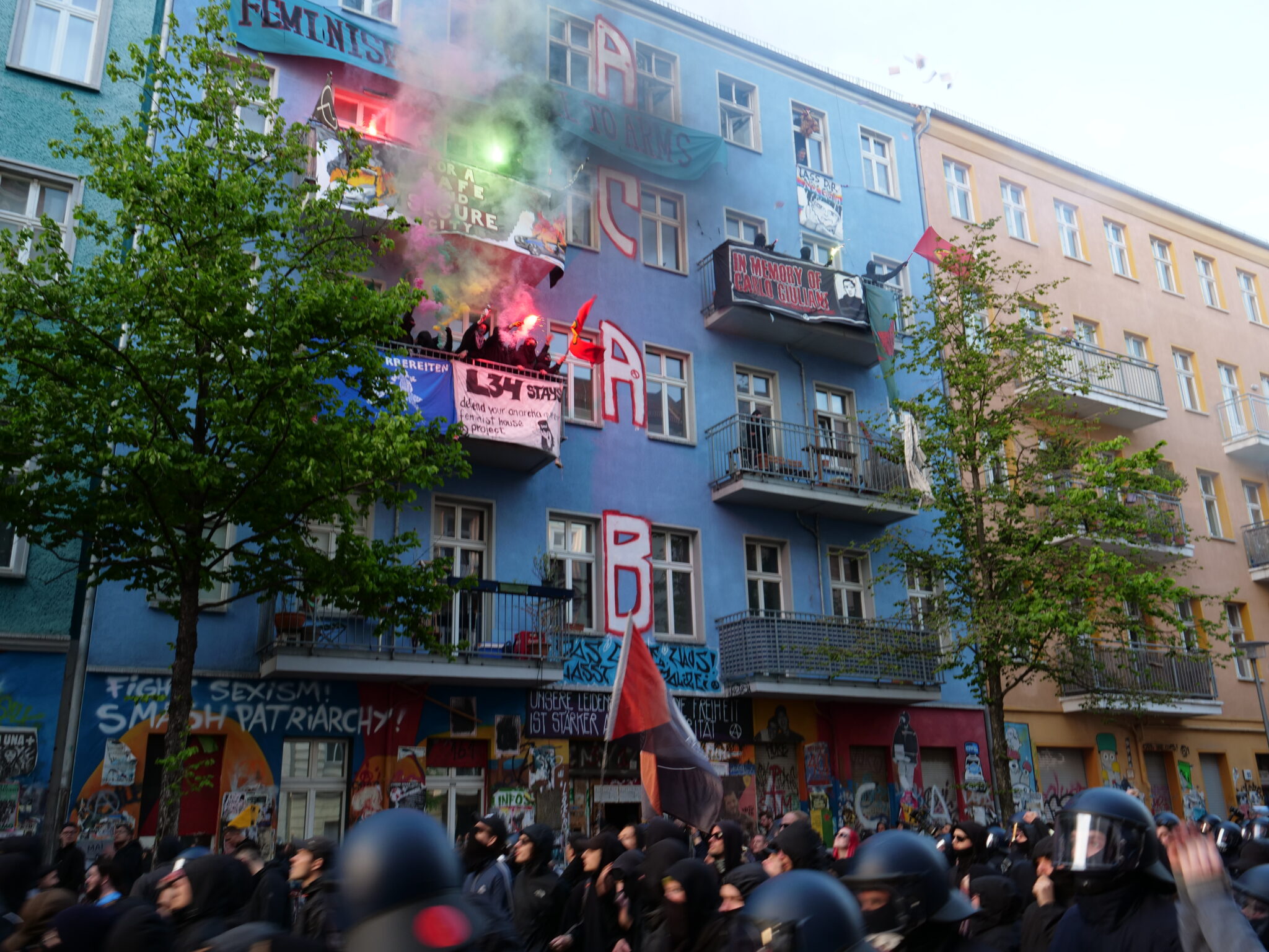 The visual and sensory elements he encounters initially confound Pitts, as he interprets these markers through his own prior experiences, positioning and shifting subjectivity. This highlights intersectionality’s value in analyzing how counterpublics work in and through affective urban space. Mirza (2015: 4) describes how intersectionality “…enables us to knit together a complex array of unstable ‘mobile’ subjectivities which by imposition, choice or desire are written on and lived within the black female body…it is only by attention to situated localised accounts of ‘marginalised lives’ that we can reveal the ways of being and becoming a gendered, sexed, raced and classed subject of material discourse”. While Mirza writes here specifically in reference to the black female experience, we can extrapolate this perspective to Pitt’s embodied experience of the Antifa protest in Berlin. His situated, localized account of this experience allows us to understand how he is positioned through categories like gender, sex, race or class and how the flux of being repositioned spatially in Berlin and encountering new milieu like Antifa in Friedrichschain disorientates these previous positions.