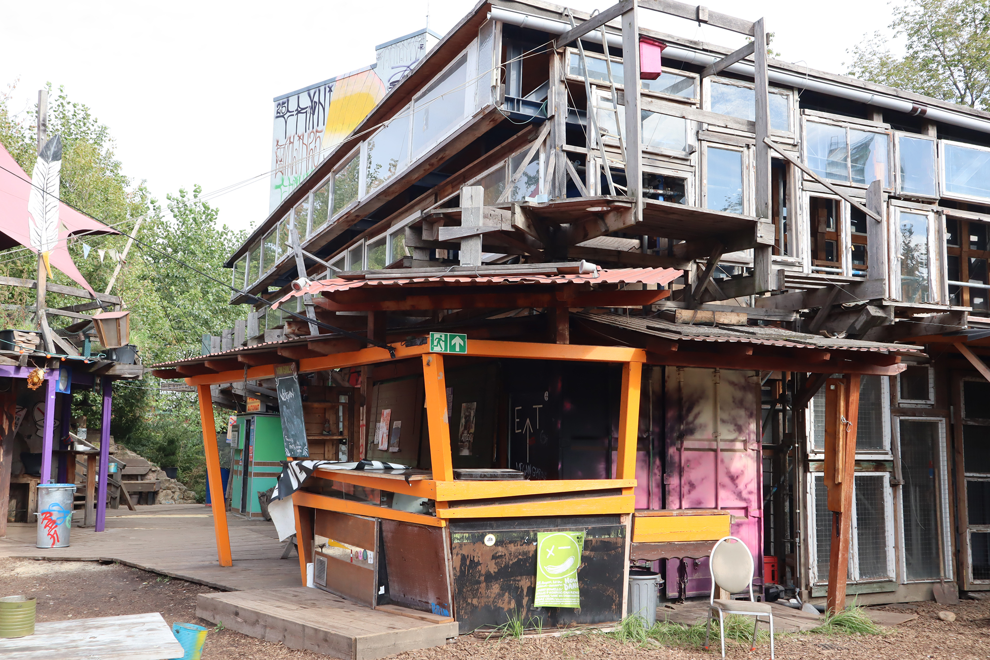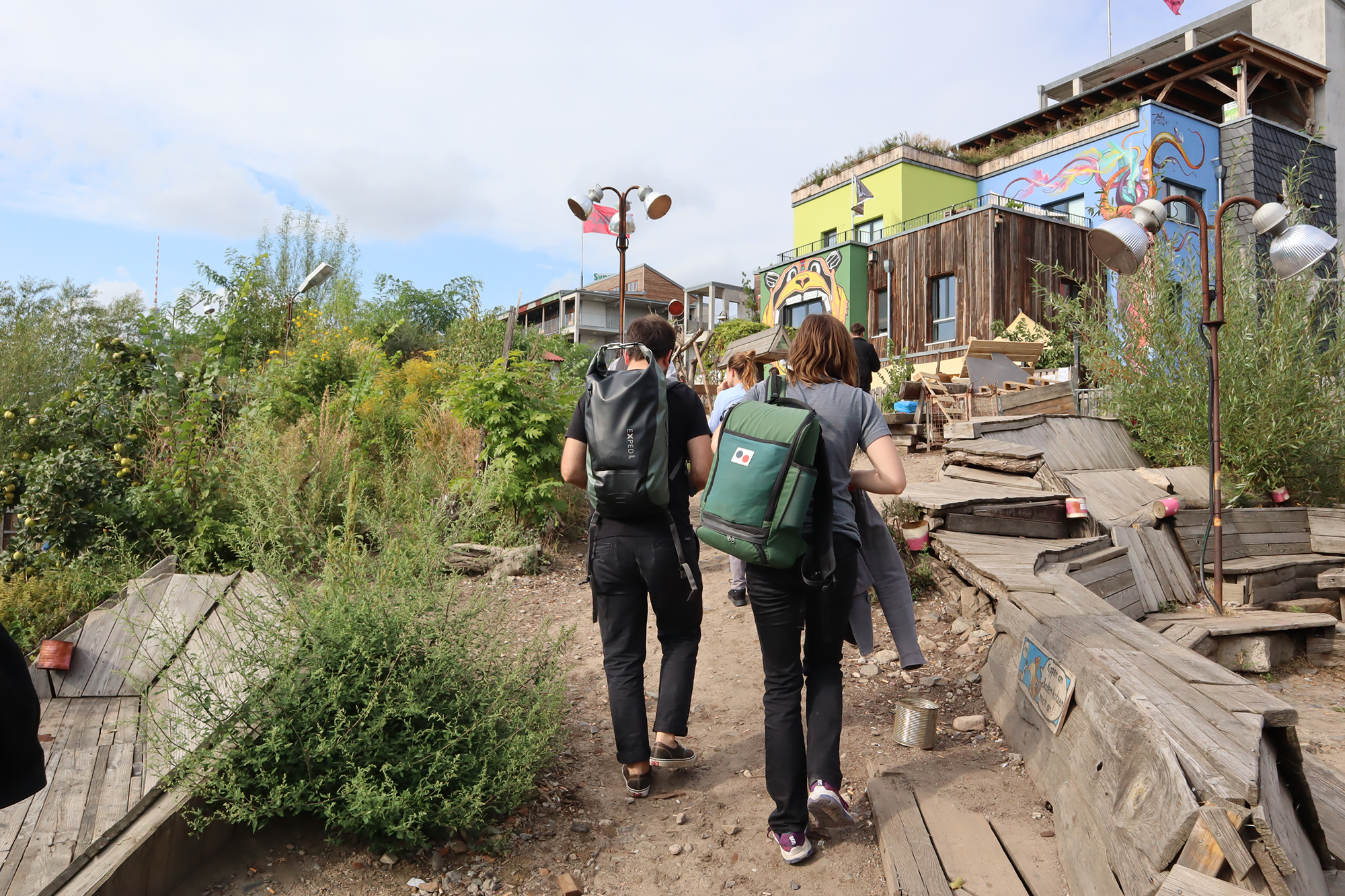 Not far from the former Cuvry-Brache and next to the Spree, the grassroots and non-commercial residential and cultural project Teepeeland can be found. Former residents of the Cuvry-Brache built their new homes on that site, including huts, tents, planting beds and hen houses.
