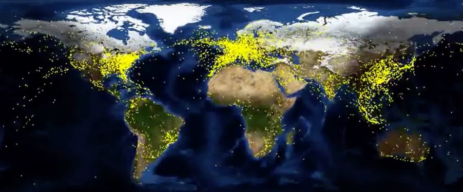 The division of the world into “overly connected” and “overly isolated” is structural and political at once. The growth, expansion and complexification of mobility networks produced incessant streams and flows connecting specific parts of the world. This is reflected in the “daily aviation maps”: streams of airplanes flying across the globe, restlessly, day and night, creating an “invisible” infrastructure of global mobility (see figure 6). Mobility and its infrastructures are at the center – as in Le Corbusier’s plan for the city – and everything else deemed to be less relevant is in the periphery. The parts of the world at the distance of these centers of mobility have produces “swamps” in the wake of these developments: areas of stagnation and repetitiveness. In swamps, newness is characteristically besieged, sometimes killed by history and time; while in rivers, history is buried, rather short-lived compared to the fascination with newness. Mobility is the barzakh between old and new, death and life, future and past, here and there, now and then.[ix] It is only the velocity of the flow that dictates which of these Janus-faced realities is more present than the other.